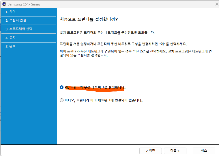 다운로드한 드라이버 파일을 클릭하여 설치합니다. 순서대로 차근차근 따라 하면 됩니다. 3단계 설치 유형 선택할 때는 신규인지 기존인지 몰라서 저는 그냥 신규 프린터로 선택했는데 1단계에서 장치 추가를 해 놓았기 때문에 기존 프린터로 선택해서 진행해도 되지 않을까 싶은데 저는 신규로 선택해서 설치가 잘 되었습니다.
