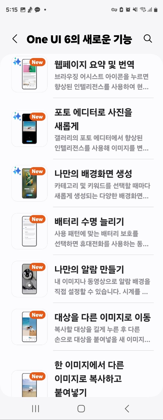 새로운 기능을 하나씩 눌러보면 간단한 설명과 영상으로 어떤 기능인지 이해가 쉽도록 되어 있어요. 저는 이 중에서 너무 부러웠던 실시간 통화 통역 기능을 사용할 수 있도록 바로 설정해 보았답니다. 통화 통역 기능 설정하는 방법 참고하세요.