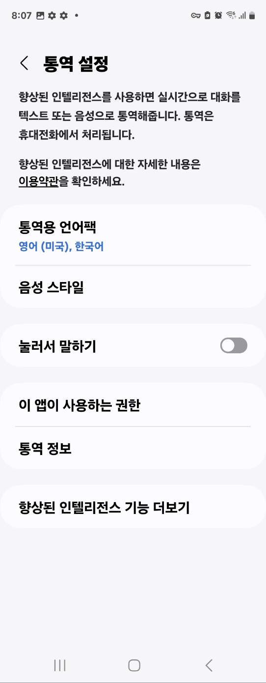 그런데 가만 생각해 보면 제가 실시간 통화 통역 기능을 과연 쓸 일이 있을까 싶은 생각이 들긴 합니다. 업데이트 이후 휴대폰 상단바 메뉴에 통역 아이콘이 생겼답니다. 통화 통역보다는 오히려 실시간 통역 기능이 더 유용할 듯하며 이제 파파고랑은 헤어져도 되지 않을까 싶어요.