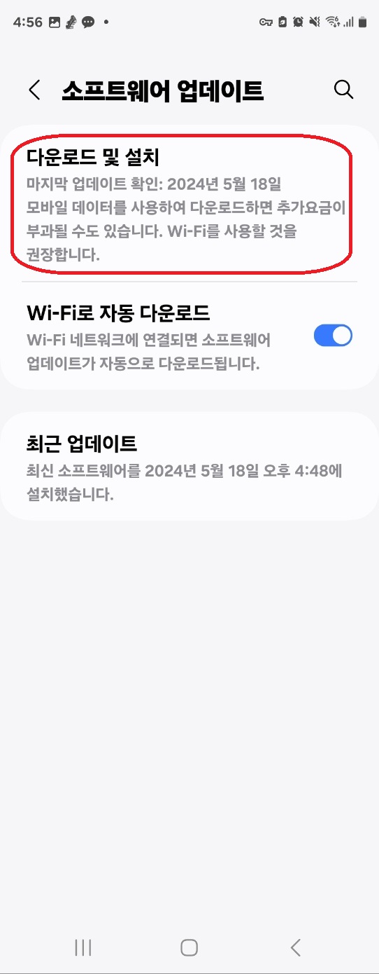 One UI 6.1 업데이트 과정을 살펴볼까요? 업데이트 방법은 [설정-소프트웨어 업데이트-다운로드 및 설치]에서 확인하셔서 업데이트해 주시면 됩니다. 설치가 완료되면 One UI 6.1의 새로운 기능을 확인하실 수 있습니다.