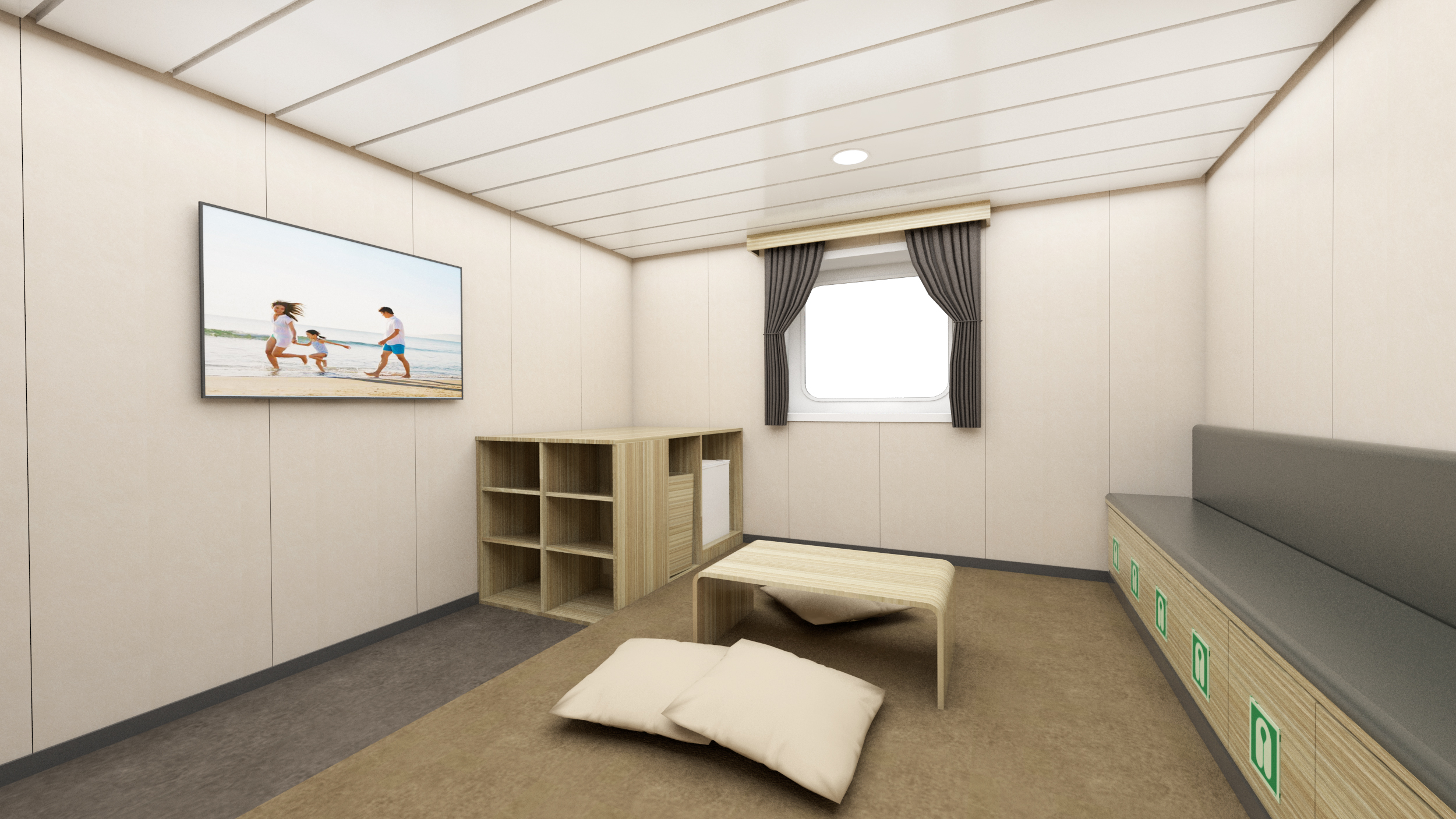 배가 큰 만큼 메인로비, 카페테리아, 편의점, 휴게실, 안마의자실, 게임룸 등의 부대시설을 갖추고 있습니다.