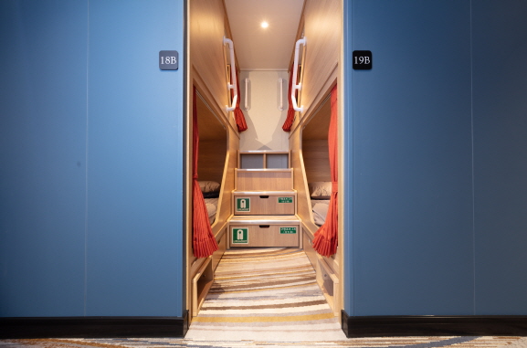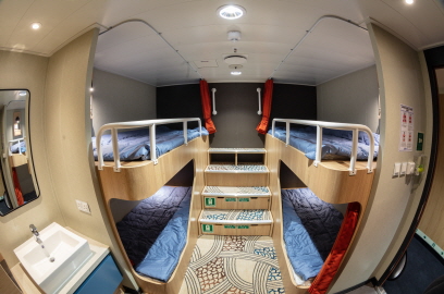 4인 가족 및 소규모 단체를 위한 객실 룸구성: 2층 침대 2개, 세면대 편의시설 및 용품: 에어컨, 수납공간, 침구류, 구명조끼 |