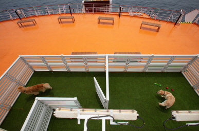 최대 5마리까지 반려동물과 함께 할 수 있는 펫룸 룸구성: 반려동물 전용 침구류, 세면대, 탈취제 편의시설 및 용품: TV, 냉장고, 에어컨, 옷장, 구명조끼 |