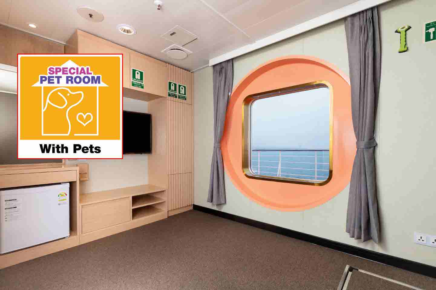 최대 5마리까지 반려동물과 함께 할 수 있는 펫룸 룸구성: 반려동물 전용 침구류, 세면대, 탈취제 편의시설 및 용품: TV, 냉장고, 에어컨, 옷장, 구명조끼 |