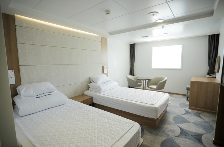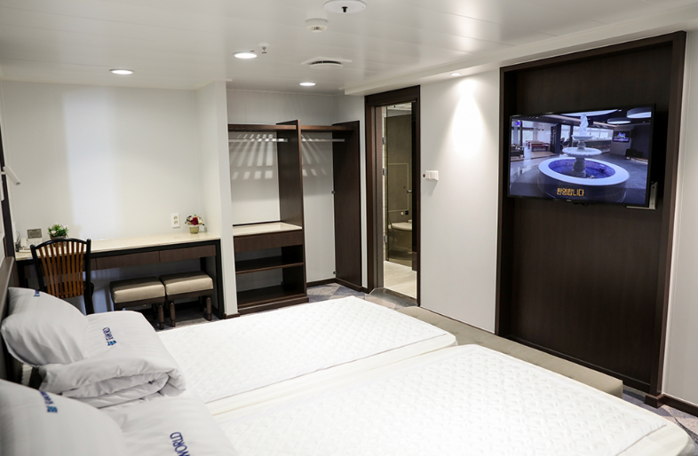 객실 종류도 다양하고 오션뷰 선내레스토랑, 포토존, 펫 플레이룸&펫룸, 파리바게트&카페, 오션뷰 펍, 오션뷰 펍 라운지, 영화관, 아코라카페, 게임룸, 세븐일레븐, 선셋테라스, 샤워실, 안마실, 단체라운지, 노래방 등의 부대시설을 갖추고 있습니다.