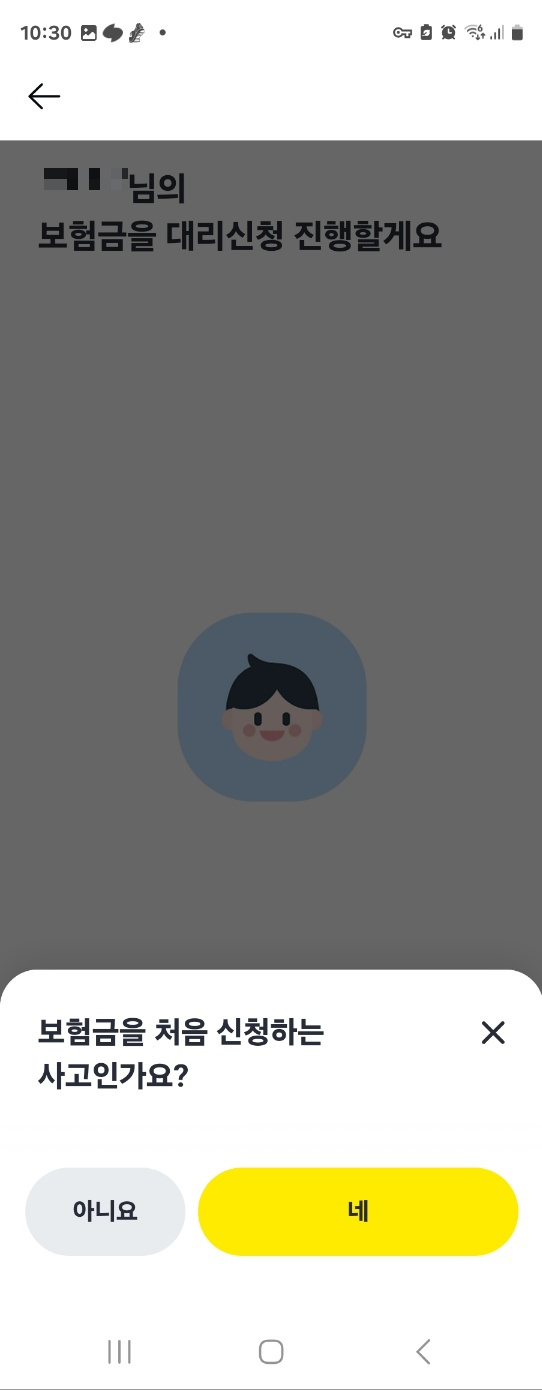대신 신청할 가족 명단이 나타나면 딸을 선택해서 보험금을 처음 신청하는 사고로 접수해 주면 됩니다. 딸은 미성년 자녀이기 때문에 공동 친권자의 동의 여부도 물어오는데 네를 선택하면 됩니다.