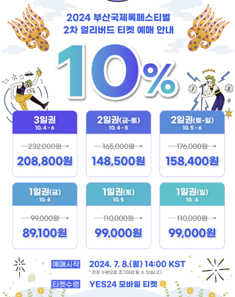 - 티켓 예매: 2024.07. 8. 오후 2시부터 yes24 단독 2차 얼리버드 티켓 예매 시작