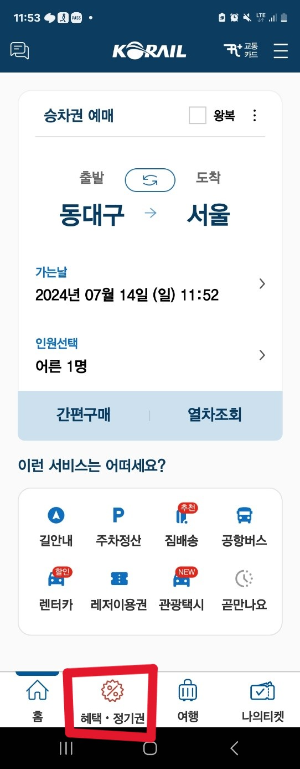 코레일톡 앱에서 예매하기