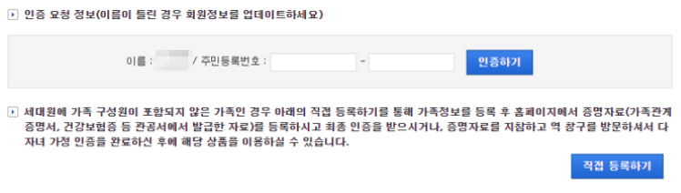 ☞ 다자녀행복 가족정보 인증하기